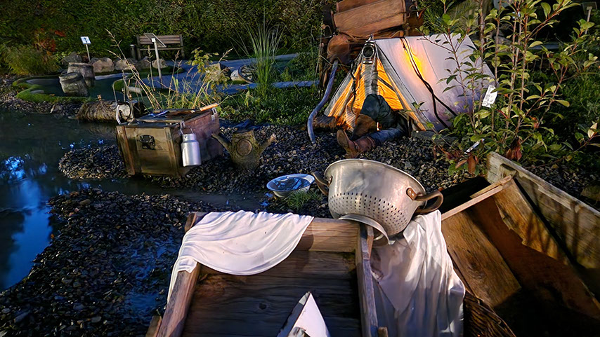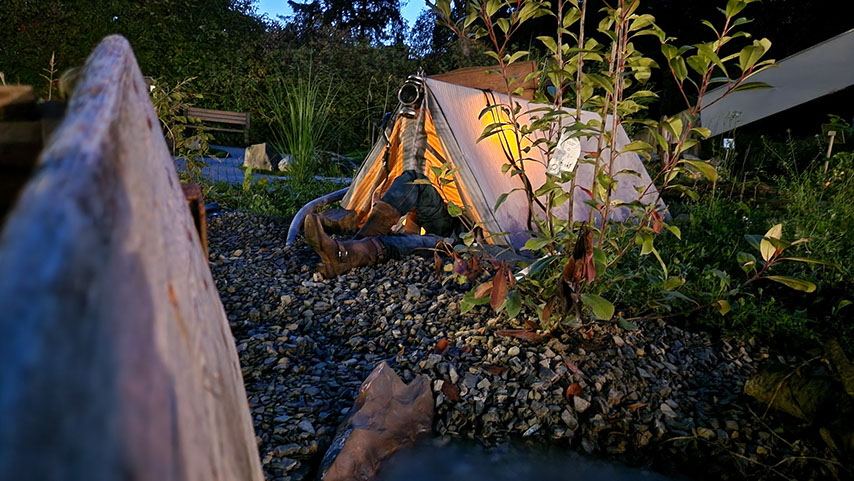 sie bauten aus Paletten und Holzleisten Gestelle, welche sie über die Bahnen stellten und mit Folie bedeckten... ein "Bauzelt"...