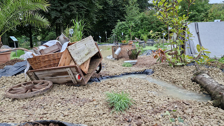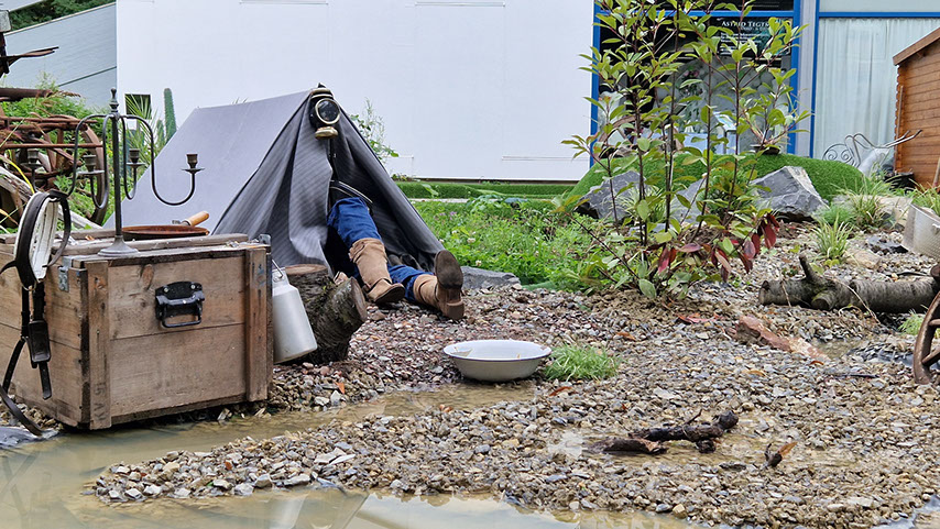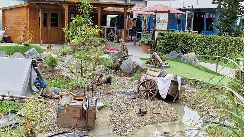 Wir legten noch das Motto "WIlder Westen" fest, da man mit diesem Thema das Beste, passend zu unserer unmittelbaren Umgebung zum Kurpark und der Allee, mit Steinen, viel Holz und Gräsern umsetzen konnte.